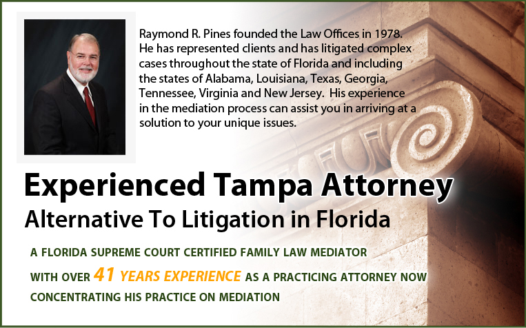 An effective, honest, and caring mediator can help. Raymond R. Pines, a Florida Supreme Court Certified Family Law Mediator, can assist you in arriving at a solution to your particular needs or issues. The mediator does not give legal advice, but can ask the appropriate questions on the issues or act as a guide to help you arrive at your appropriate agreement.